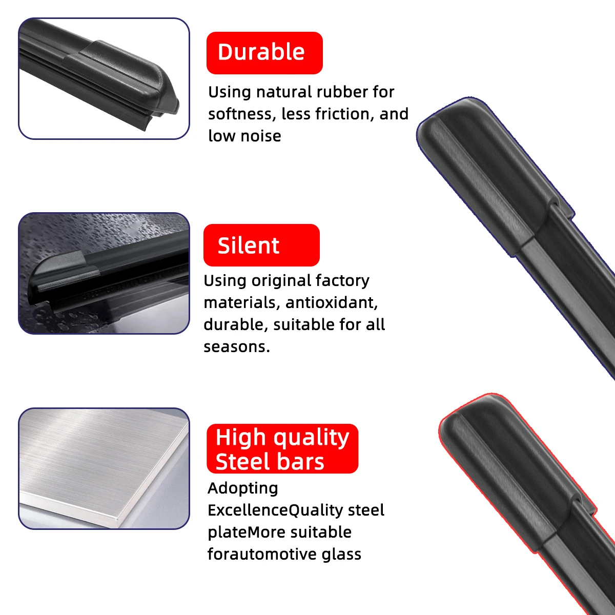 γ High quality steel sheet γ Improve driving visibility and safety – Multiple pressure points and embedded friction reducers can achieve uniform pressure distribution in the longitudinal direction of the blade, which is helpful for cleaning and wiping.